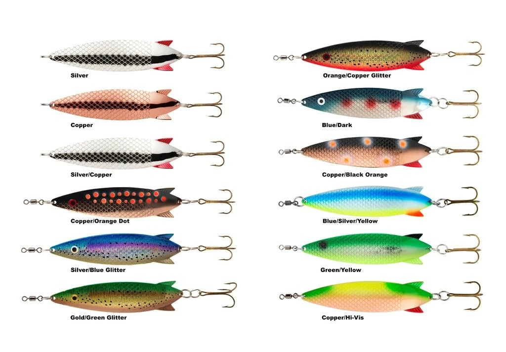 Dieser Blinker ist die ultimative Köder zum Lachsfang in Flüssen und Meer. Der Lachsblinker ist in 12 fängigen Farben verfügbar und hat ein Gewicht von 30g.