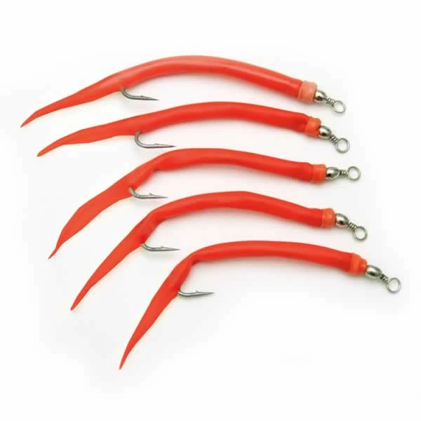 Diese Gummi-Makks gibt es in den Größen 4/0 bis 12/0. In der traditionellen Farbe Japan-Rot können Sie Ihre Vorfächer damit selbst knüpfen. In jeder Packung sind 5 Stück enthalten.