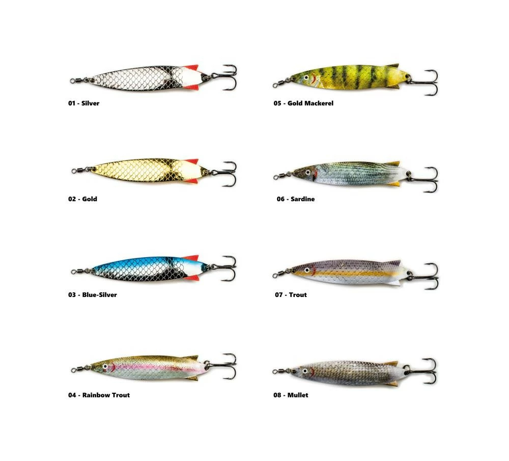 Besonders geeignet sind diese Blinker für MEERFORELLE, HECHT, ZANDER und andere Raubfische im Süß- und Salzwasser. Dieser traditionelle Raubfischlöffel ist seit Jahrzehnten einer der meist verwendeten Blinker für Raubfische aller Art. Seine pfeilförmige Form lässt sich hervorragend werfen und sein unwiderstehliches Laufverhalten im Wasser lässt keinen Raubfisch kalt. Dieser Löffel hat eine Wirkung wie kein anderer. Sein massiver Metallkörper sinkt mit konstanter blinkend und flatternd im Wasser wie eine verwundete verwundete Elritze. Entwickelt, um jede Art von Raubfische zu fangen, die auf den Biss reagieren. Brillantes, hochglänzendes Finish mit hochwertigen Drillingen. Der Basti-Spoon ist aus solidem 2,5 Millimeter starkem Metall gefertigt. Es gibt ihn mit einem Wurfgewicht von 28 Gramm und in acht tollen Farben. Fünf davon naturnah mit der neuen Fotoprint-Bedruckung.