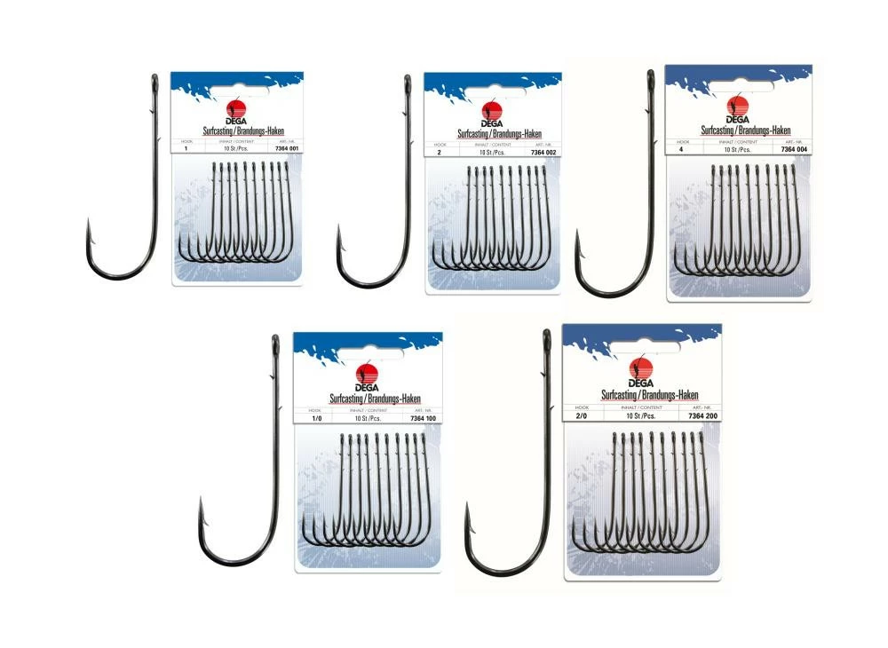 Dies sind sehr scharfe und stabile Surfcasting Einzelhaken. Es sind die idealen Haken um Brandungsvorfächer zu bauen. Sie besitzen zwei Widerhaken, somit halten die Köder wie Wattwurm besser am Haken. In jeder Packung sind 10 Haken enthalten. Die Hakengrößen reichen von 4 – 2/0.