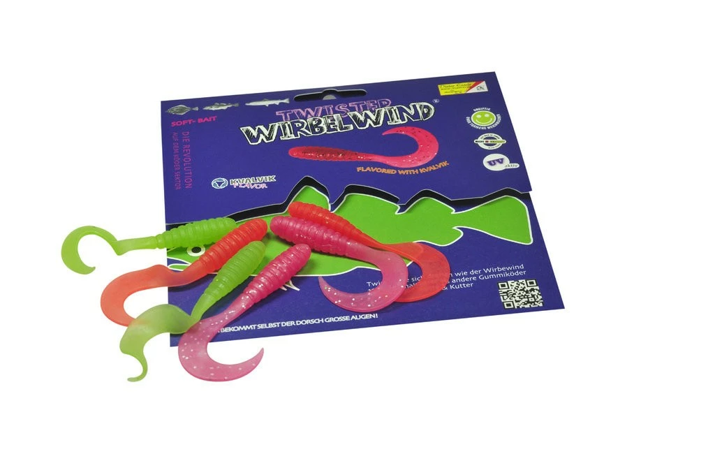 Der Twister ist eine Allzweckwaffe zum Fang von Fischen. Dieser Köder besticht durch eine Vielzahl von Eigenschaften, die ihn von anderen Ködern am Markt unterscheidet. Er wird zu 100% in Deutschland produziert und besteht nicht aus toxischen Weichmachern. Der Wirbelwind spielt sehr verführerisch auch bei wenig Strömung, was seiner soften Konsistenz geschuldet ist. Er ist aber dennoch sehr haltbar und und resistent gegen Meeresräuber-Zähne. Er verführt diese nicht nur durch seine UV-Aktivität, sondern auch über den Geruch. Die Twister sind vollgesogen mit dem revolutionären Lockstoff Kvalvik. Der Wirbelwind-Twister kann solo am Jigkopf gefischt werden oder als Beifänger in der Ostsee und in Norwegen. Die vielen Vorteile dieses Köder sprechen für ihn. Es gibt die Twister in 2 Ausführungen, welche in 2 x drei unterschiedlichen Farben sortiert angeboten werden.