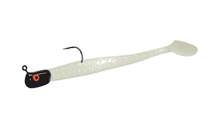 Den Hogy Paddle Thumber Tail gibt es hier zusätzlich in der Farbe bone und einem Gewicht von 105g. Er hat eine übergroße Schwanzflosse, die für eine hämmernde Aktion sorgt. Mit leichtem Gewichten läßt sich dierser Köder seicht unter der Oberfläche führen und sorgt dort für perfekte Druckwellen. An einem schwererem Jigkopf entwickelt dieser Köder eine stark hämmernde Welle beim Absinken. Diese Thumber Tail Schwänze sind extrem langlebig. Made in USA. Dieser Artikel ist fertig an einem VMC Jigkopf montiert.