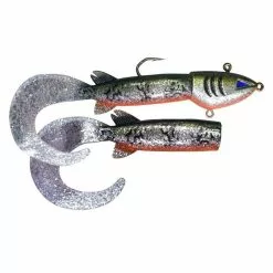 Der einfachste Weg einen Gummifisch ohne Bleikopf zu montieren – oder einen Bleikopf später davorschalten. Die Spirale wird in den Gummifisch oder auch Köderfisch geschraubt, die Haken mittels Metallstifte im Köder fixiert und das Angeln kann beginnen. Die Haken bleiben hierbei frei hängend unter dem Köder, was Fehlbisse auf ein Minimum reduziert.