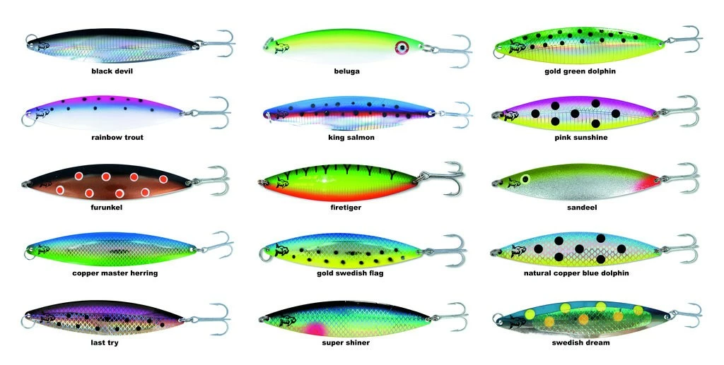 | 10 | King Salmon | Blau-Silber mit Magentastreifen – ein echter Sonnenschein. Mit Kupferinnenseite der Geheimtipp vieler Trolling Guides in den letzten Jahren. Fängt topp bis 15 Meter. |
