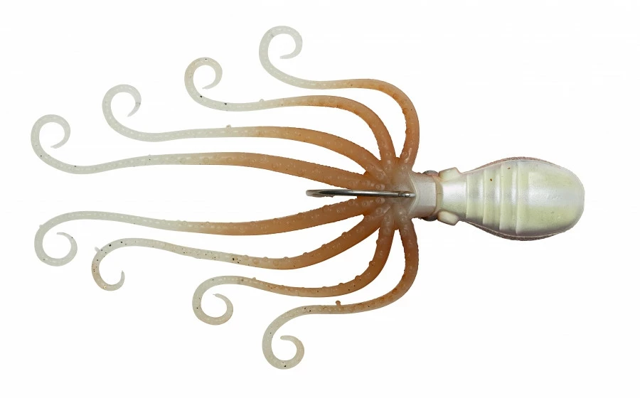 Der 3D Octopus basiert auf dem Scan eines echten Baby Octopus. Der Körper ist aus einer Bleilegierung und die Arme sind aus super haltbarem, aber weichem TPE. Der Köder bietet fast keinen Wasserwiderstand in der Absinkphase und springt beim Slow Jigging weit zur Seite. In Haltephasen hängt der Köder lebensecht im Wasser und die Arme bewegen sich schon bei der geringsten Strömung.