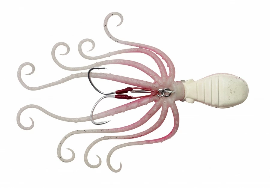 Dank Super Glow-Farben, des Skirts zusammen mit eingebauter Rasselkammer und Blasenfang spricht der 3D Octopus jede visuelle, auditive und sensorische Wahrnehmung an, die bei Raubfischen Aggression oder den Fressinstinkt auslöst. Da er echte Heavy Duty Hardware besitzt, ist der 3D Octopus designt, um es mit den wildesten Raubfischen am Meeresgrund aufzunehmen.